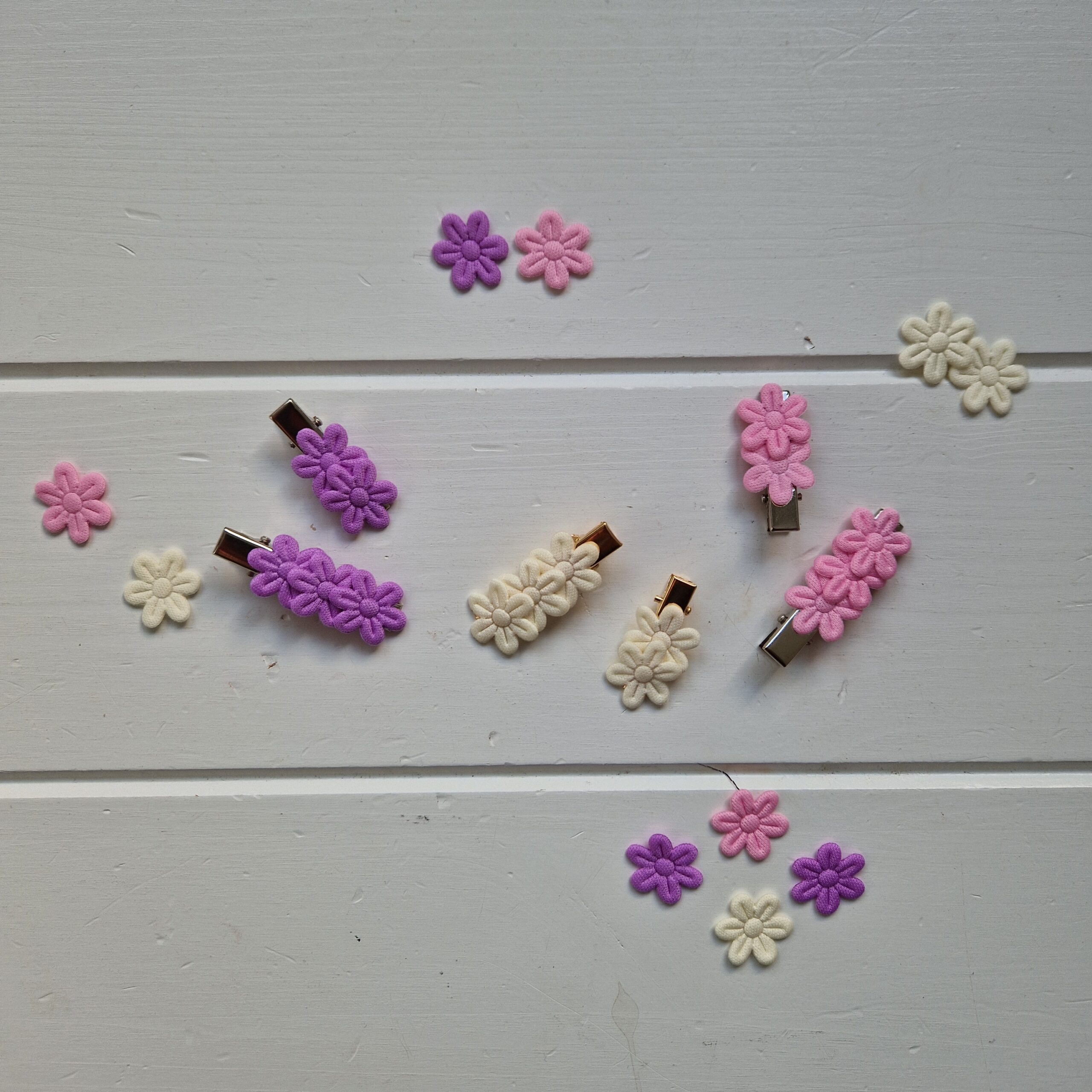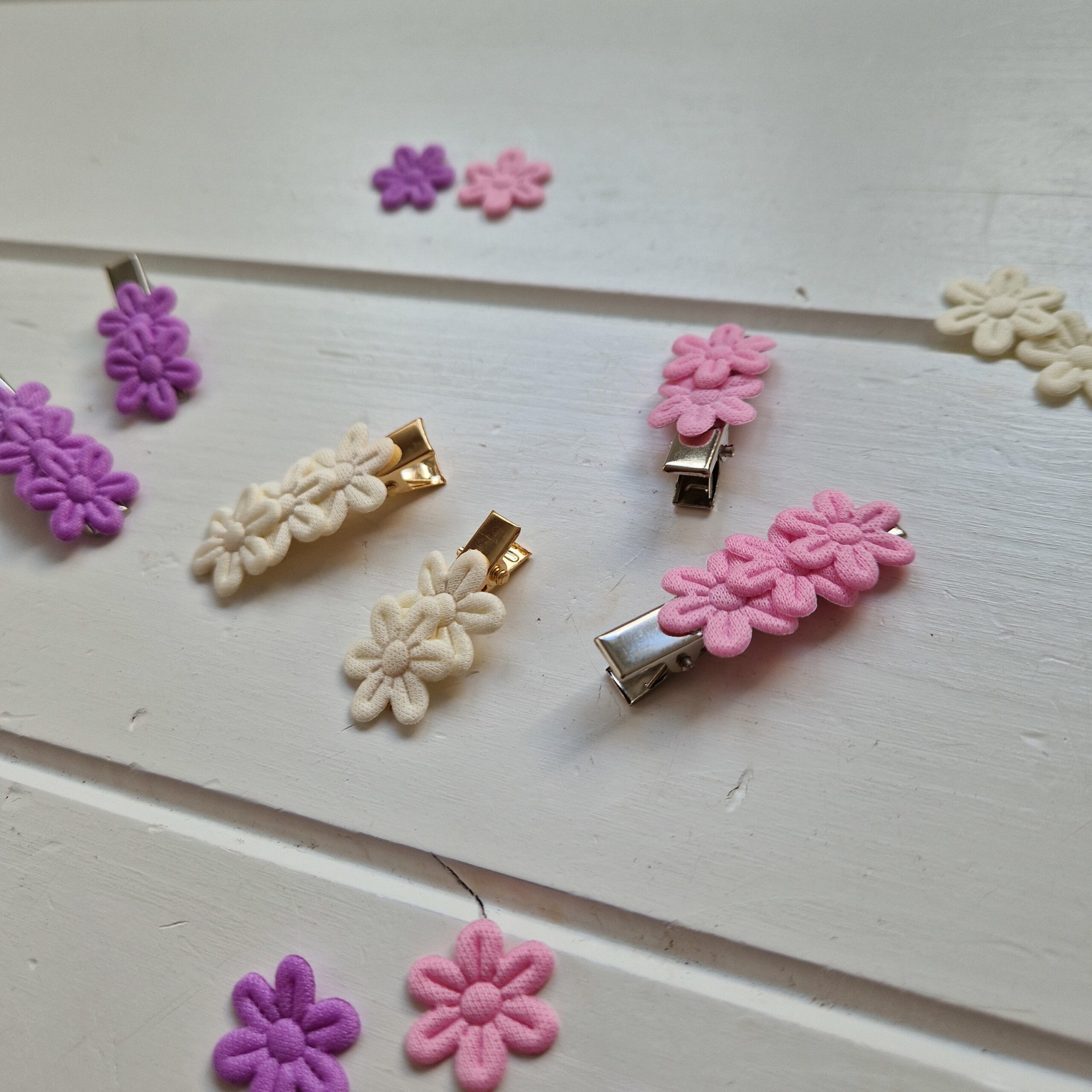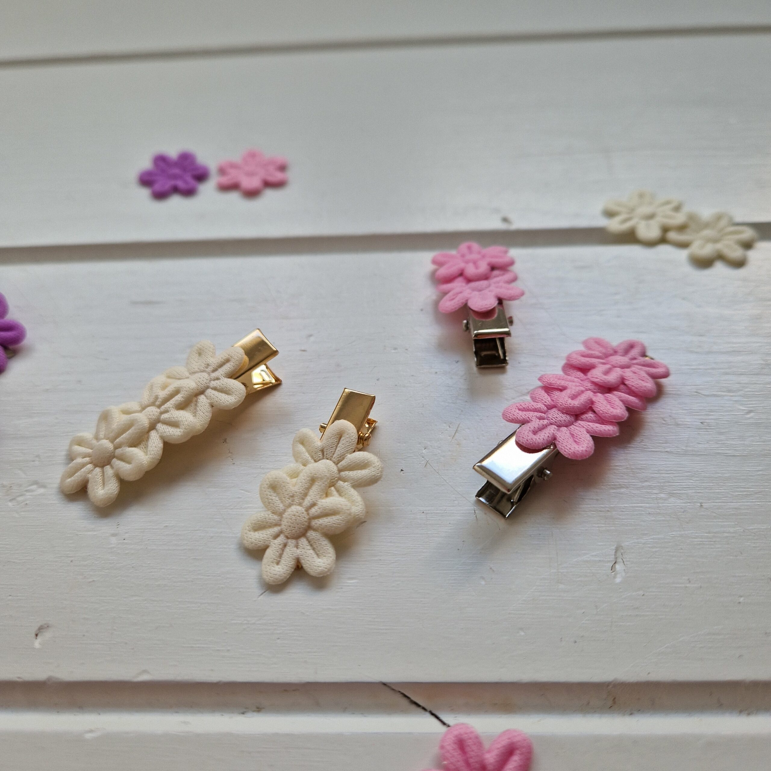 Deze leuke flower alligatorclips verkrijgbaar in 3 verschillende kleuren bloemetjes en 2 kleuren speldje.